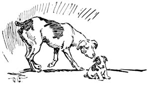 So Pierrot lived happily through his baby days on the dairy farm on the Waterloo Road. There was plenty of skim milk and other things for him to eat, and after he had overcome a slight predisposition to colic he began to grow very fast. His feet persisted in keeping ahead of him in growth, and he was still awkward when he ran fast, but his bones were getting big and strong and he was growing solid and heavy. As the cold weather came on his bark grew deeper and less squeaky and the stiff hairs began to show[Pg 17] through the soft puppy coat. Pierrot was fast growing into a fine big dog, black and white with spots of tan above his eyes and on his muzzle and forelegs.