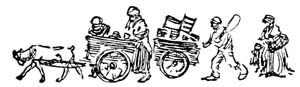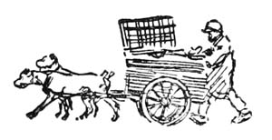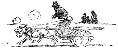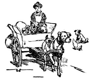 As dawn broke there appeared on the road other people with dogs and carts—women with milk and both men and women with fresh vegetables and fruit. Some of the market gardeners had larger carts with two or even three dogs, and a few of the lazy ones rode and nodded on their carts.