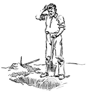 [Pg 84]The next morning, having seen no soldiers, and finding the country apparently peaceful, he was emboldened to continue his journey by daylight, for the longing for home was strong within him. But the attempt was too much for his weakened body, and he was forced to give up before noon and crawl under a hedge to rest.