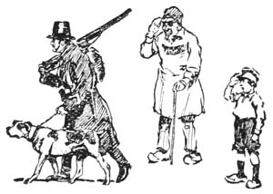 [Pg 90]People in houses and peasants in the fields he learned not to fear, and twice he was invited into cottages and fed. But always he managed to get away after he was rested and never knew that he was guilty of ingratitude. Sometimes men on the road or in the fields called to him, but he would not stop. Once a boy gave chase, but Pierrot put all the speed he could muster into his three legs and contrived to escape, though he was obliged to lie panting for a long time after this race before he could recover. It was hard for him to understand this loss of his old-time power.
