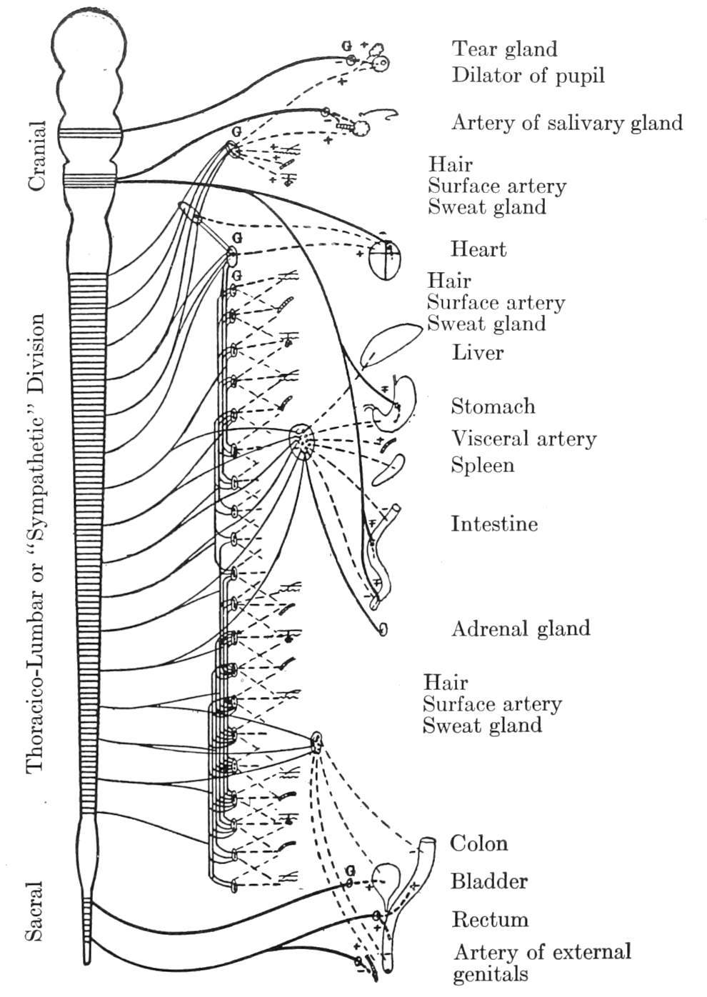 - “Sympathetic” autonomic division: extensive distribution of neurones of, 26;