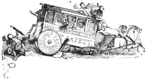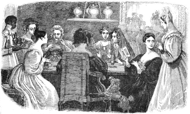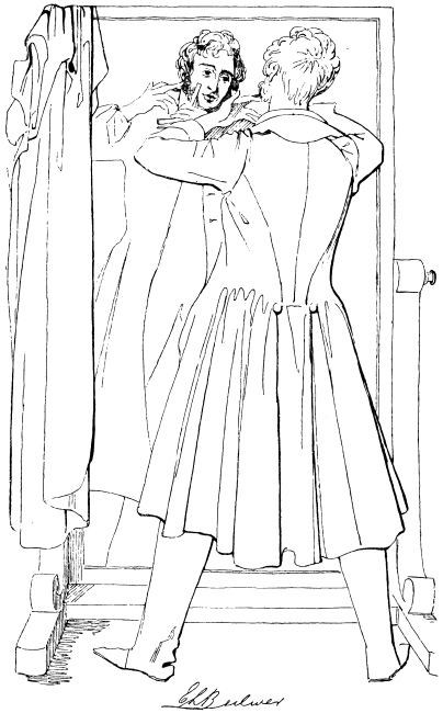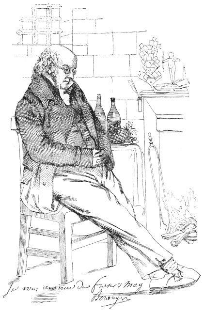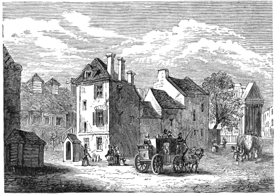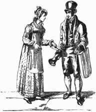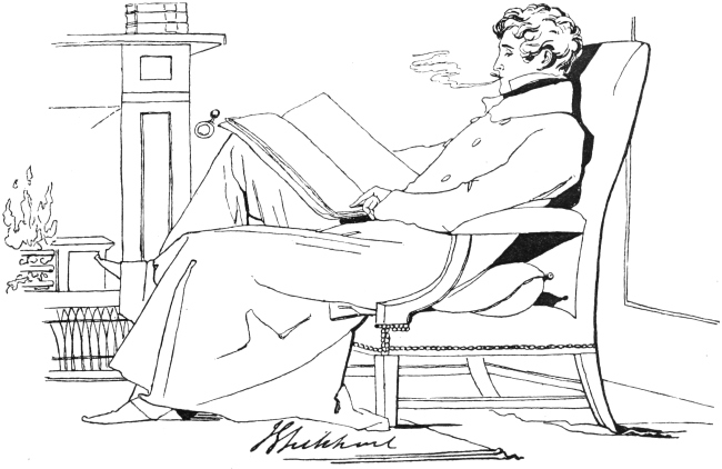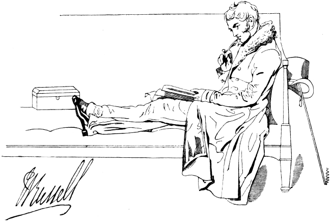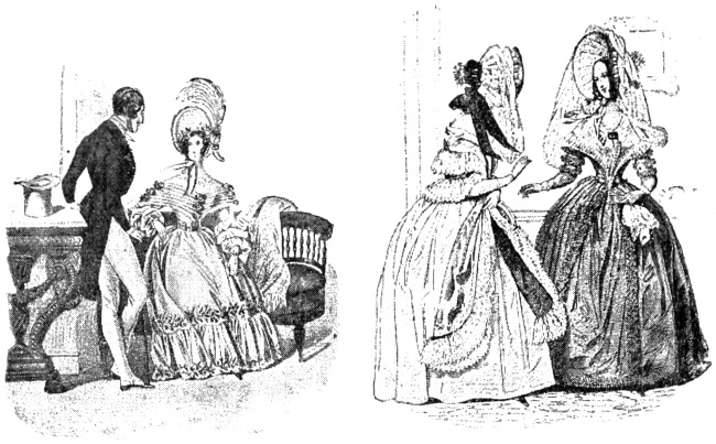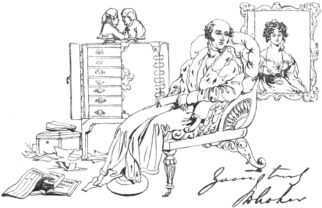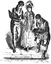 In compiling even such a modest work as the present, one is constantly attended by a haunting dread of having forgotten something necessary to complete the picture. I have been adding little things ever since I began to put these scenes together. At this, the very last moment, the Spirit of Memory whispers in my ear, ‘Did you remember to speak of the high fireplaces, the open chimneys—up which half the heat mounted—the broad hobs, and the high fenders, with the fronts pierced, in front of which people’s feet were always cold? Did you remember to note that the pin of the period had its head composed of a separate piece of wire rolled round; that steel pens were either as yet unknown, or were precious and costly things; that the quill was always wanting a fresh nib; that the wax-match did not exist; that in the country they still used the old-fashionedviii brimstone match; that the night-light of the period was a rush candle stuck in a round tin cylinder full of holes; and that all the ladies’ dress had hooks and eyes behind?’