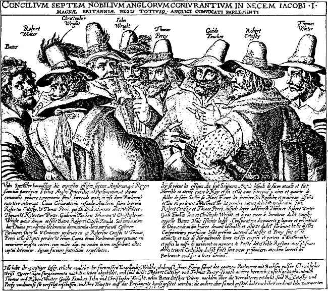 Action in the case of the recusants was followed by the famous Gunpowder Plot. There can be no doubt that the Catholics were maddened by disappointment, by persecution, by the failure to obtain toleration, and by the fines to which they8 were subjected. The conspirators proposed, as is well known, to blow up the King, the Lords, and the Commons when the Parliament should assemble. This plot, like that of Raleigh, belongs to the history of the country.