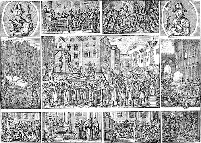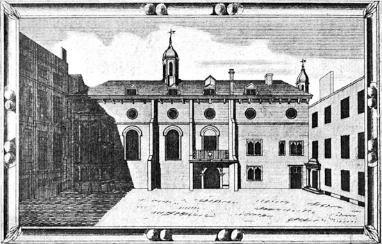 On a certain Sunday afternoon, the 26th of October 1623, occurred a disaster, called the Fatal Vespers, which was long remembered as a signal proof of Heaven’s wrath against those who followed Popish worship. The French Ambassador at that time had a house in Blackfriars, adjoining which there was a large upper chamber, sometimes used as the Ambassador’s chapel, about 60 feet long and 20 feet broad. Roman Catholics in London frequented the chapels at the various embassies. But19 this was not the French Ambassador’s chapel, which was within his house. Perhaps the occasion demanded a larger room.