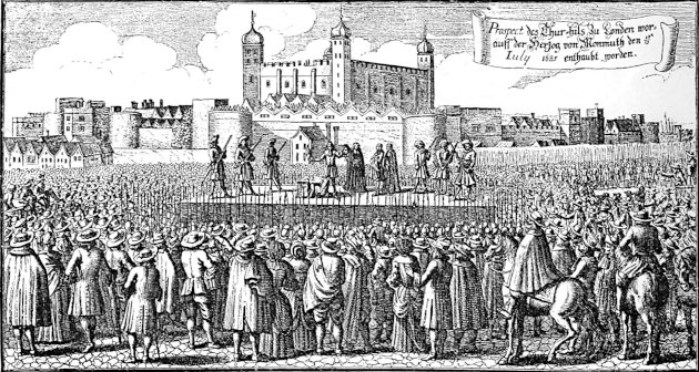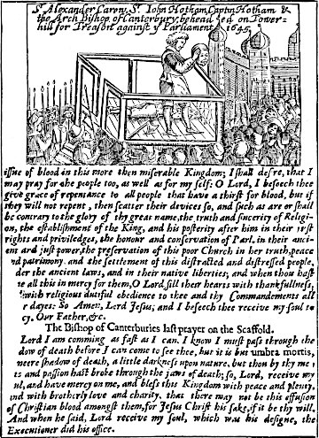 St. Alexander Carew, St. John Hotham, Captin Hotham & the Arch Bishop of Canterbury, beheaded on Towerhill for Treason against ye Parliament 1645.