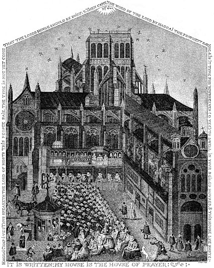 On this afternoon about 300 persons were assembled to celebrate evensong and to hear a sermon from a Jesuit named Father Drury, a person held in great repute for his learning, his blameless life, and laudable conversation. The congregation consisted of English, Scotch, Irish, and Welsh. The sermon began between three and four in the afternoon. The text was the parable of the king and the servant whom he forgave.