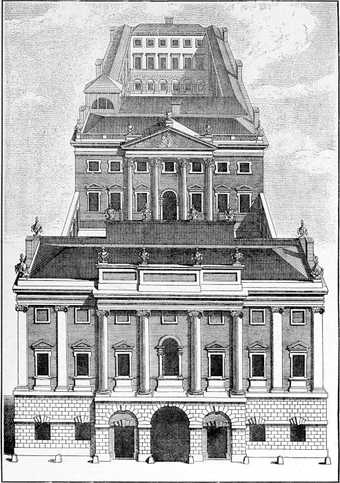 The New River was completed after eight years of work. The length of the canal was 60 miles; it was crossed by 800 bridges, and five years were spent in the construction; the people were slow in taking their water from the new supply, probably because they detested changing their ways. The City was at first supplied with water from the Walbrook and the Fleet; there were also wells and springs on the rising ground of the Strand; in Moorfields, at Shoreditch, and elsewhere there were wells sunk within the City walls; and there were “bosses” or taps of fresh water brought in from Tyburn. All this, however, was not enough; the principal sources of supply, the Fleet and Walbrook, had long since ceased to be of any use. Powers therefore were sought to bring more water into the City, and were granted to bring water from Hampstead and from the river Lea; these powers were not, however, used. Improved works were set up at Tyburn; water mills were placed in the Thames, by which water was forced up and conveyed as far as Leadenhall. Finally, after a great deal of hesitation the City made use of these powers to construct a canal from springs at Chadwell and Amwell in Herts, and accepted the office of Hugh Middleton, a goldsmith, to execute the work. Middleton would have failed, however, but for the help of James, who agreed to pay half the cost of the work if Middleton gave him half the property. This was done in an assignment of thirty-six “King’s shares.” Charles parted with them for an annuity of £500. A few years ago an undivided share sold for £94,900. Yet Middleton died in reduced circumstances, unable to pay a loan which the City had advanced him on the progress of his work.