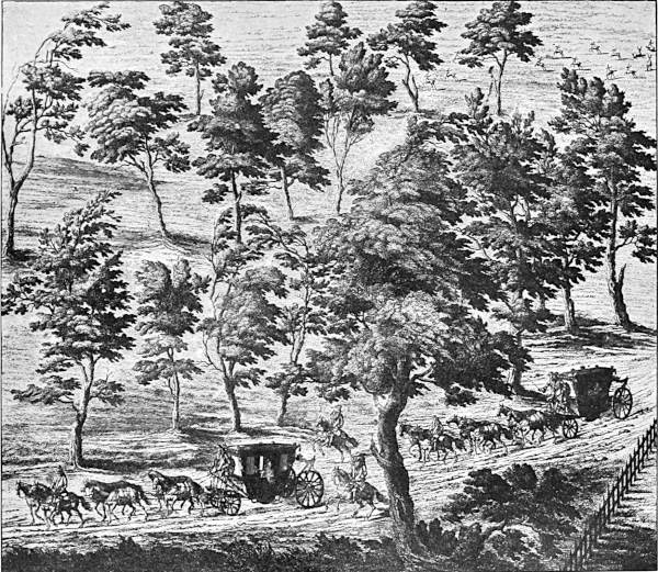 At the same time the laying down of broad freestones instead of the old cobbles was commenced. Those of the inhabitants who chose laid down the stones before their own doors. We must understand, therefore, that all the important streets at this time were paved with cobbles; that in a few of the principal thoroughfares there was a pavement of flat stones, but not uniform; and that there were many courts and alleys where there was no kind of pavement at all. We may further understand that this was the London of Hogarth as well as of James I.