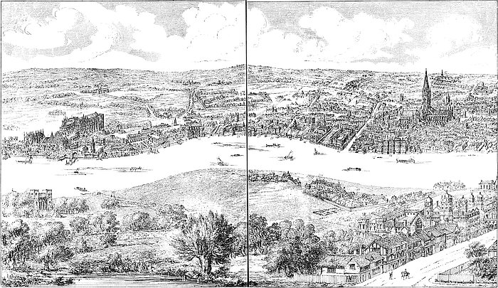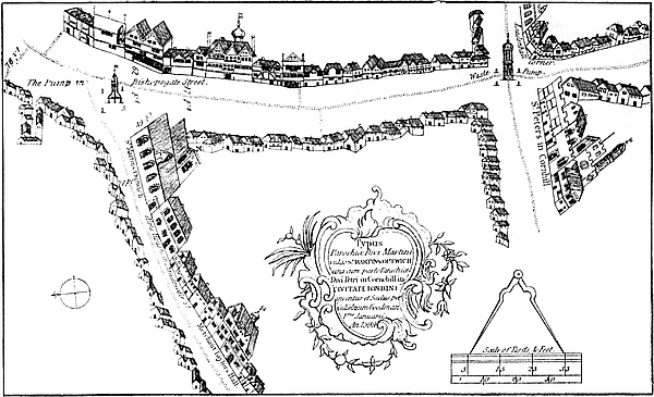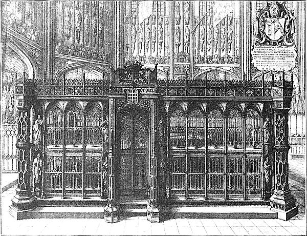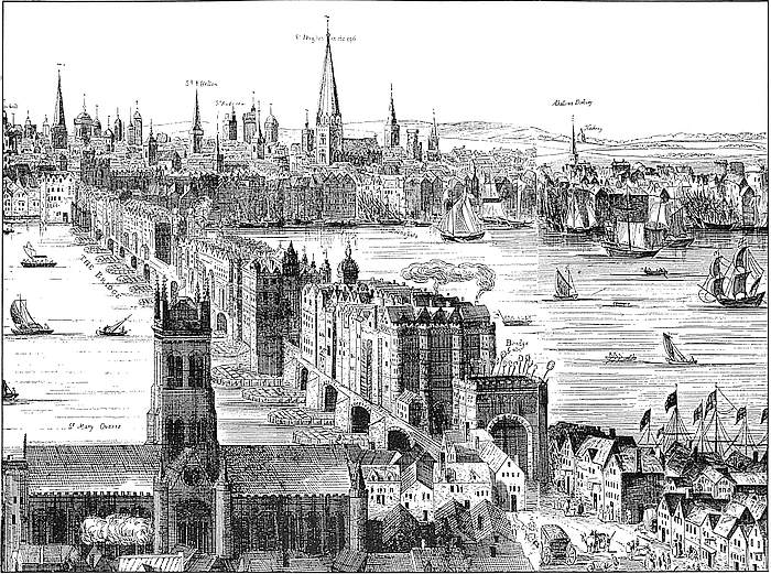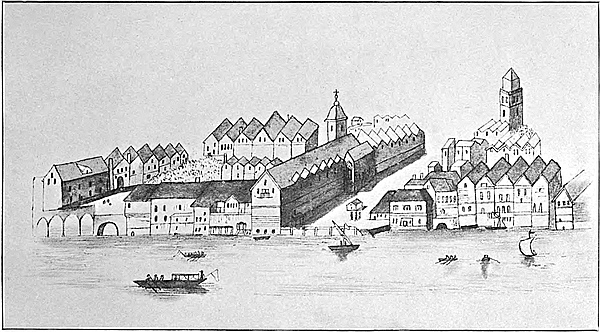 The events which belong especially to London in this reign, as we have seen, were not numerous, nor were they of enduring importance. As regards building, the King pulled down a chapel and a house—the house where Chaucer once lived—at the west end of Westminster Abbey, and built the Chapel called after his name; the Cross of Westchepe was finished and put up; Baynard’s Castle was rebuilt, “not after the former manner with embellishments and Towers,” but more convenient. It was the time when the castle was passing into the country house; it became now a large and handsome palace, built round two courts facing the river, much like those palaces built along the Strand, but without any garden except the courts.