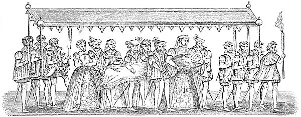 On the 14th November 1501, Prince Arthur, then a little over fifteen years of age, was married to Katherine of Aragon, who was then three years older. They were married in St. Paul’s Cathedral. Holinshed says that a long stage was erected, 6 feet high, leading from the west doors to the Choir; that at the end was raised a Mount on which there was room for eight persons, with steps to go up and down;10 and that on this platform stood the King and Queen and the bridegroom, and on it also the Mayor and Aldermen were allowed a place.