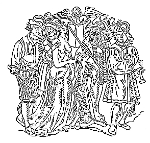 After the ceremony a splendid feast was held, with dancing and disguisings. Holinshed concludes his account of the wedding by an anecdote which, if true, proves that the Princess was truly the wife of Arthur. The day after, the Royal party went to Westminster, where there were tournaments and great rejoicings. The Prince died five months afterwards. Another royal wedding, held on the 25th January 1502, caused even greater rejoicing. It was that of the Princess Margaret with the King of Scotland; a marriage which promised peace and goodwill between the two nations; a promise which has been fulfilled in a manner unexpected, by the failure of the male line of Tudors. One observes how strong the desire of Henry VII. was to conciliate the goodwill of London. He borrowed money from the City over and over again, but he always repaid these loans. The exactions that we find recorded are chiefly those of his old age—when he was fifty-two years of age, which was old for that time, when he had grown covetous. He could be ostentatious when show was wanted, witness the marriage of Prince Arthur with Katherine. He could also entertain with regal splendour, witness the Christmas cheer he offered to the Mayor and Aldermen.