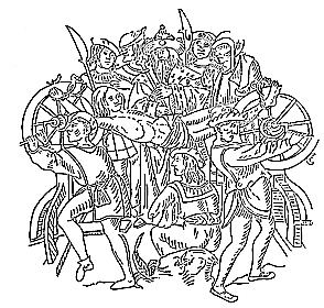A curious story of this reign relates how the King, to use a homely proverb, cut off his nose to spite his face. For the conduct of Margaret, Duchess of Burgundy, in acknowledging the Pretender, so incensed him against the Flemings that he banished them all. No doubt he inflicted hardship upon the Flemings, but he also—which he had not intended—deprived the Merchant Adventurers of London of their principal trade. The Hanseatic Merchants, perceiving the possible advantage to themselves, imported vast quantities of Flemish produce. Then the ’prentices rose and broke into the Gildhalla Teutonicorum—the Steelyard—pillaging the rooms and warehouses. There was a free fight in Thames Street, and after a time the rioters were14 dispersed. Some were taken prisoners and a few hanged. As nothing more is said about the Flemings, one supposes that they all came back again.