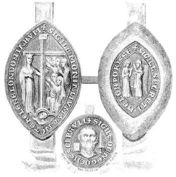 5 It is interesting to note the places mentioned in this document. They are the Old Temple (in Holborn, at the N.E. corner of Chancery Lane); Jews’ Street, i.e. the old Jewry; St. Olave’s Jewry; Market Street (Cheapside); Fish Street; St. Margaret’s Church; St. Peter’s, Cornhill; Chepe; the Flete; Aldermanberie; St. Clement’s; and St. Paul’s.