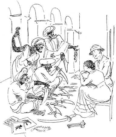 | Street Scene, Ahmedabad. English Travellers sketching and making Purchases | 57 |