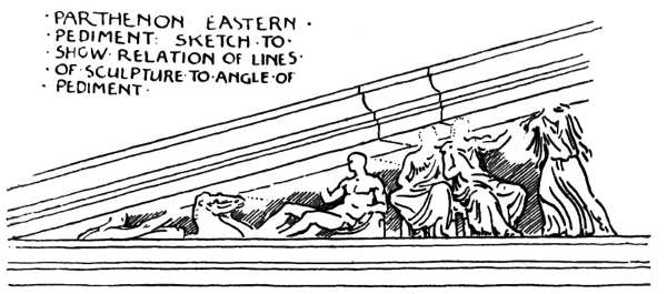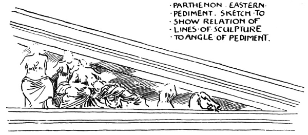 | The Parthenon—Eastern Pediment, sketches showing relation of lines of sculpture to angle of Pediment. | 12 | |