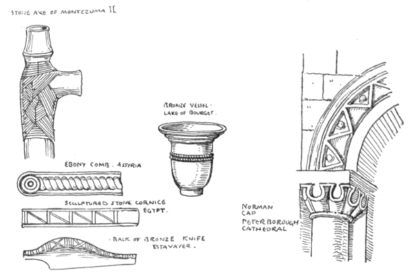 My illustrations are drawn from many sources, and consist of a large proportion of those originally used for the lectures, only that instead of the rough charcoal sketches done at the time, careful pen drawings have been made of many of the subjects in addition to the photographs and other authorities.