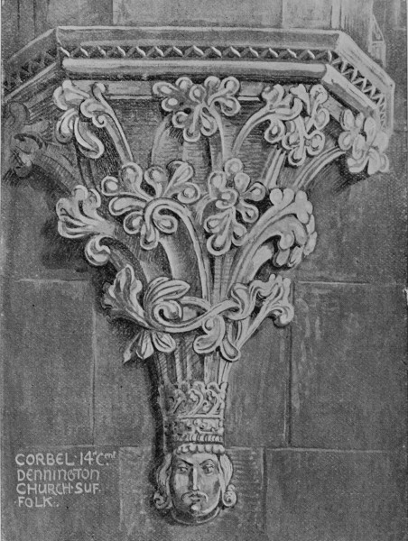 LIST OF ILLUSTRATIONS entry: "Corbel, Seventeenth Century, Dennington Church, Suffolk" changed to read "Corbel, Fourteenth Century, Dennington Church, Suffolk."