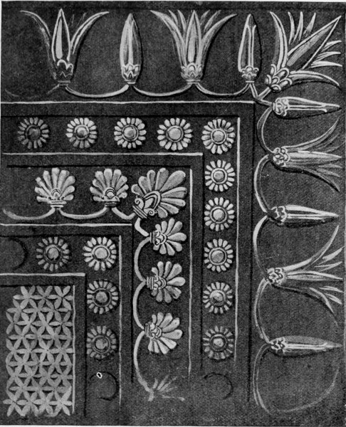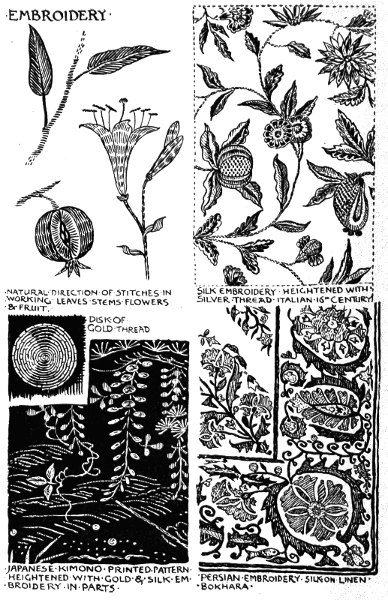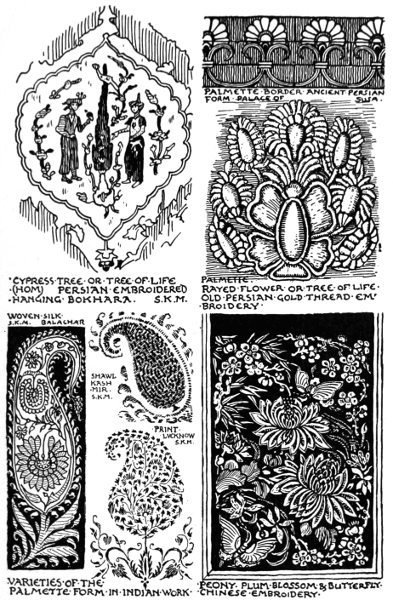 It may be noted that I have freely used both line and tone blocks in the text and throughout the book, although I advocate the use of line drawings only with type in books wherein completeness of organic ornamental character is the object. Such a book as this, however, being rather in the nature of a tool or auxiliary to a designer's workshop, can hardly be regarded from that point of view. The scheme of the work, which necessitates the gathering together of so many and varied illustrations as diverse in scale, subject, and treatment as the historic periods which they represent, would itself preclude a consistent decorative treatment, and it has been found necessary to reproduce many of the illustrations from their original form in large scale drawings on brown ix paper touched with white, as well as from photographs which necessarily print as tone-blocks.