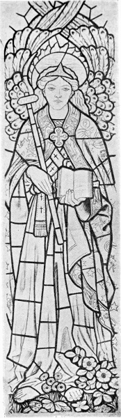 5 I give some reproductions from photographs of the beautiful fragments from the Sainte Chapelle, now in the South Kensington Museum, as types of the earlier glass, and from Winchester College for the later, and two cartoons of Ford Madox Brown's as examples of good modern design, showing leading.