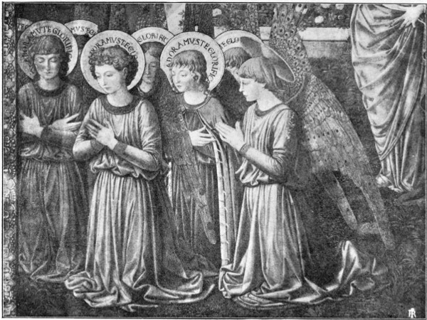 | Brocade Hanging, from the Annunciation, by Memling. | 43 | |