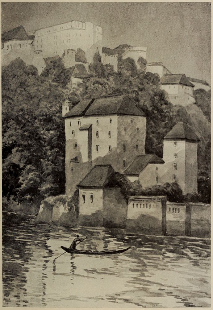 From the time of the Romans onwards, from the time when our authentic chronicles begin, this mighty river has along its many hundreds of miles been the scene of so much history-making that to present the full story of the Danube would be to re-tell a large part of the history of the Continent during two thousand years. Such, it need scarcely be said, is not my aim or intention. To bring within the compass of a single volume some indication of the manifold beauties of the river, some hint of the romance that attaches to its castled crags, its villages, towns and cities, some suggestion of the great happenings of the past, some hint of the fascination of the present, is all that I can hope to do. And even so I am primarily concerned with presenting something of the story of the “scenic” Danube—that great stretch of the river which runs[Pg vii] from near Ratisbon in Bavaria to the Iron Gate between Rumania and Servia, the stretch of which, from voyaging in steamers, from tramping along the river-side roads, and from journeying along it by railway, I have a personal knowledge. In applying the word “scenic” to this greater part of the great river, it is not intended to suggest that the upper waters above Kelheim and the lower waters below the Iron Gate have not also much to offer the traveller, but the portion indicated is that which comprises the most famously picturesque parts of the Danube. It includes the beautiful mountainous stretches above and below Passau in Bavaria and Austria, where the river runs at the foot of the southern slopes of the Böhmer Wald; it includes the wonderful Wachau of Lower Austria, and the finely varied extent of the Hungarian Danube, with the grand Kazan defile, where the river forms a natural barrier between Hungary and Servia. Along the greater part of the great extent which lies between the limits named, comfortable passenger steamers run all through the summer season, and in these steamers the traveller may continue through Rumania and Bulgaria down to the Black Sea, and all the colour and glamour of the Orient. In the upper parts of the river, before we can get afloat on it, the Danube is as it were but an incident in the scenery, but, when once we reach the parts navigable by passenger steamers, the scenery becomes the setting or framework for the mighty stream.