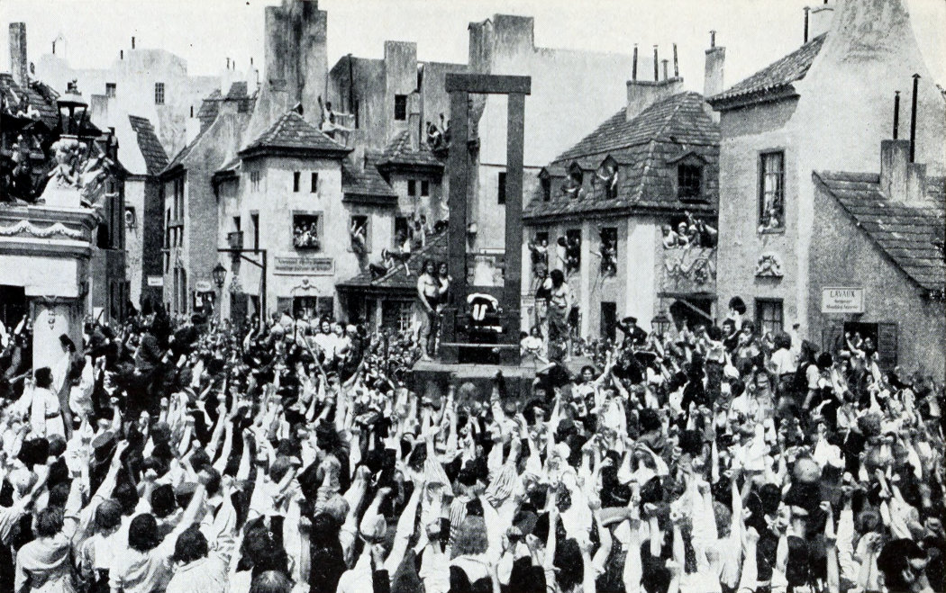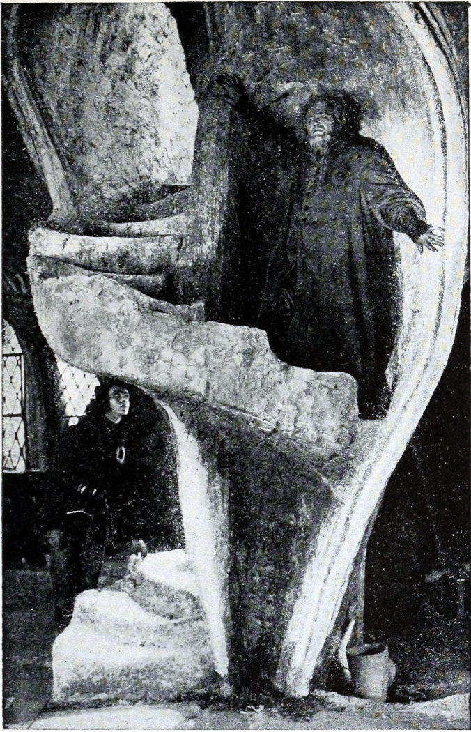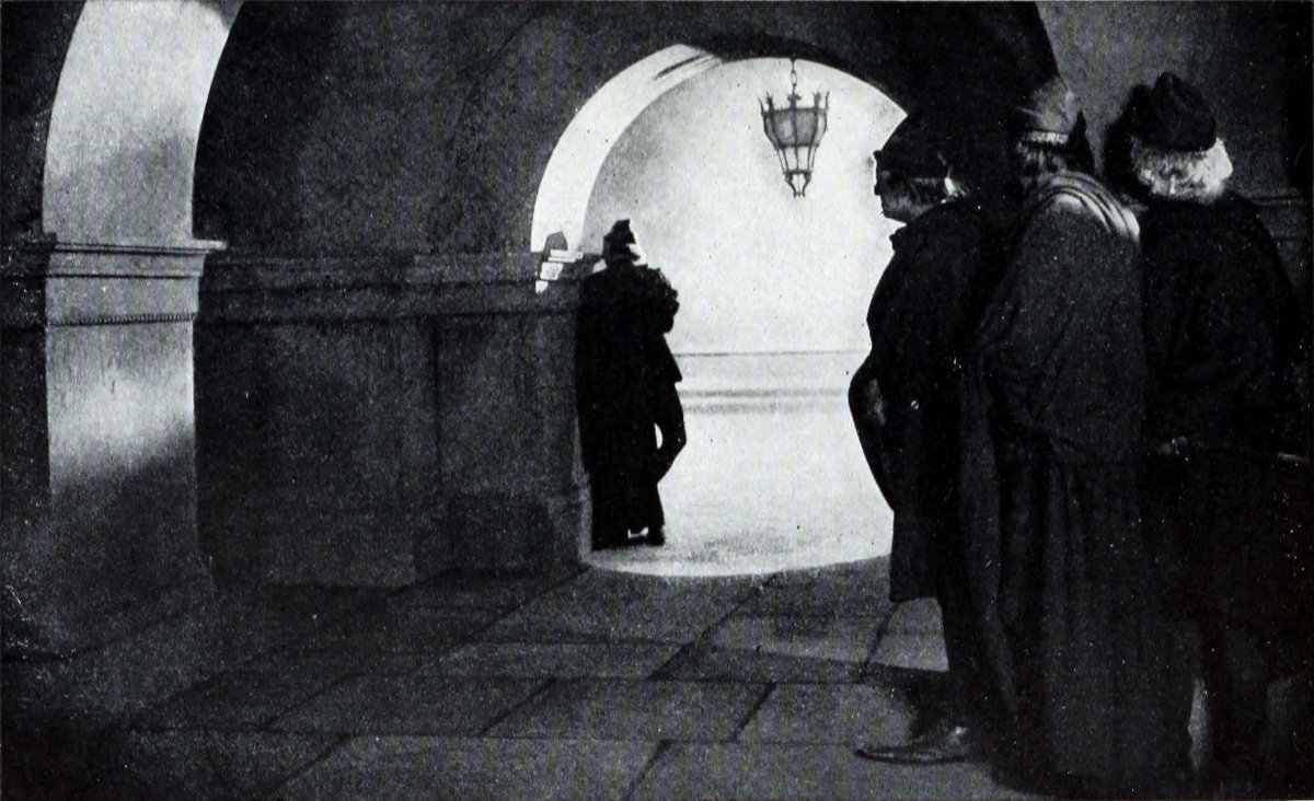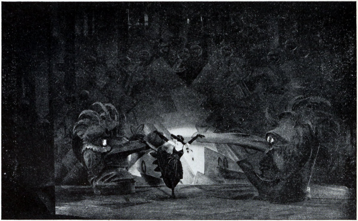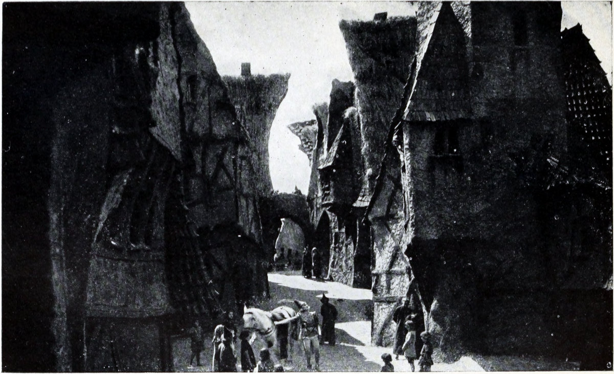 Long before the moving picture was a reality, there was an art of dumb, mute, moving bodies which achieved its ends through crude and, viewed from the present point of view, distinctly laughable method of procedure. I have reference to the pantomime. We see that such forms as the [7]Pantomime has thus far employed, such devices as it has thus far called to its aid, have by no means exhausted its artistic possibilities. The mimic action, or incident, was laid at such a great distance from the spectator that the finer values of the enterprise failed of their real significance; they could not, in truth, be applied. The pantomimic actor—even much more so than is the case with the actor on the stage of the spoken drama when he is obliged to depend upon gestures for his effects—saw himself forced into an excess of pathos with which it was quite impossible for his soul to keep pace. We felt such acting was affected; we dubbed it “hollow, theatrical pathos.”