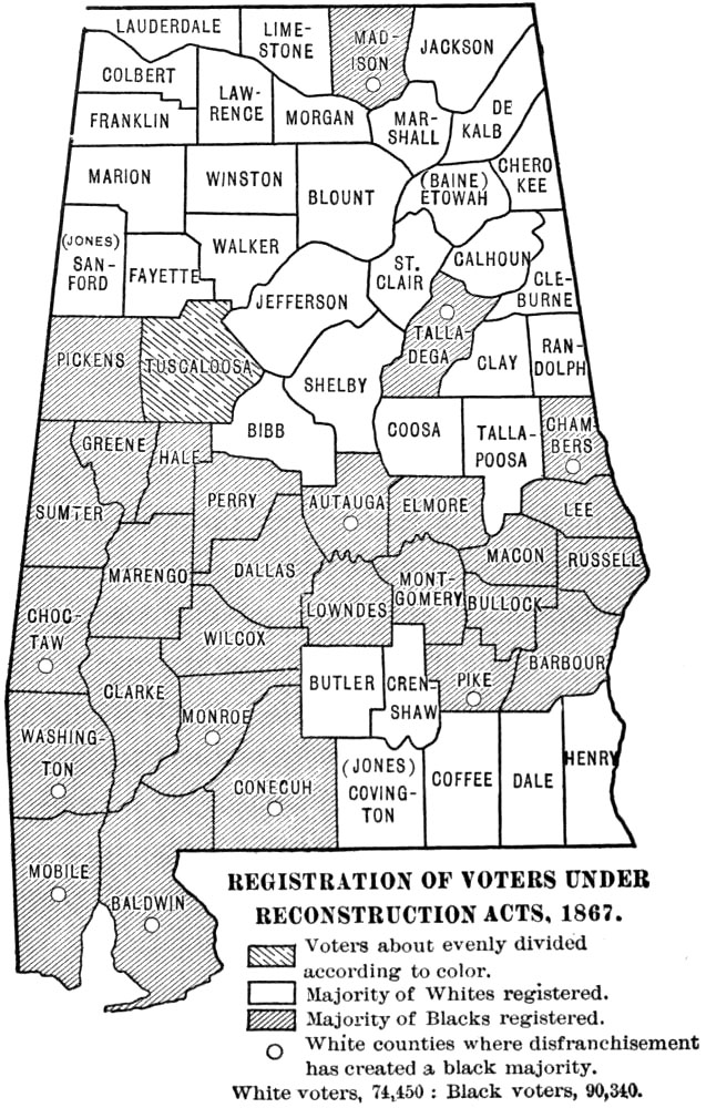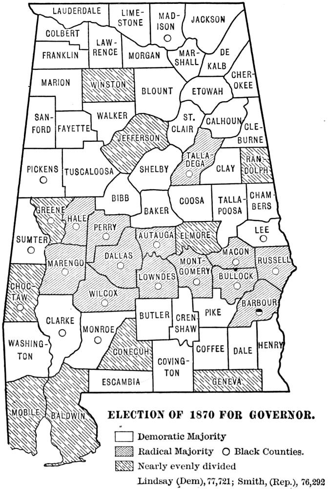 [2096] Acts of Ala. (1868), pp. 113, 129, 133, 350, 407, 414, 421; (1869-1870), p. 451; Montgomery Mail, Feb. 24, 1870; Annual Cyclopædia (1870), p. 12.
