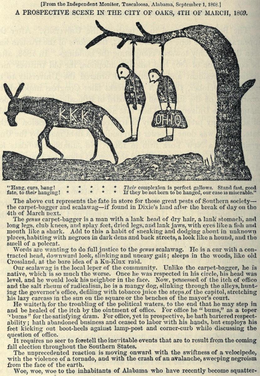 [2103] Ku Klux Rept., Ala. Test., pp. 93, 103, 104, 358, 435, 1878; N. Y. World, Nov. 3, 1868; Coburn Report, p. 512; Herbert, “Solid South,” p. 60.
