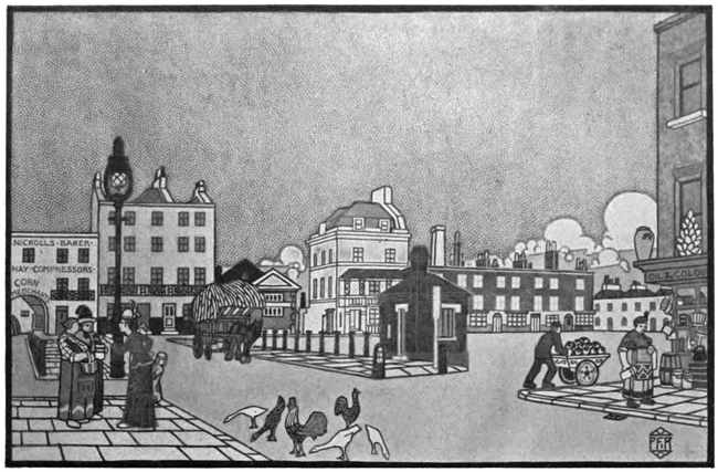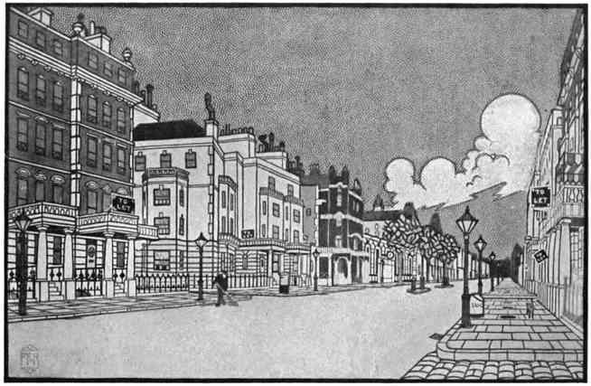 Also one should readily cede to the fancy that is bred by a beautiful place name. It is true that, as a rule, the most attractive names lead to the least attractive places, but on the way one touches singularity often, and beauty sometimes. My Baedeker has always been Kelly’s Directory; that is one of the books I should like to find in my restricted library if I were wrecked on a desert island. For, sitting under my bread-fruit tree, warm in my garment of yakskin, and smoking an earthen pipe of dried I don’t know what leaf, Kelly’s Directory would bring up dreams, dreams such as these: Seven Sisters’ Road, Satchwell Rents, Beer Lane, and Whetstone Park. All those dreams have come true, and thus a little of my fervour has been abated by their materialisation; by the discovery of Seven Sisters’ Road as gray, refuse-strewn, rich9 in Victorian goodness and in modern slum; of Satchwell Rents as a dusty affluent into Bethnal Green Road, shuttered, and locked, and suspicious. Whetstone Park, of course, is not at Whetstone, but just off New Oxford Street, and there is no park there. But still, those names, like Orme Square, that secludes itself from the Bayswater Road behind its column and its defiant eagle, like Cumberland Market, Hanoverian, naked, whose many iron posts await cattle that never come, contain the seed of romance because they induce quest. And so I will not be discouraged yet, but soon must discover what stones have wrought Jedburgh Street and Parsifal Road.