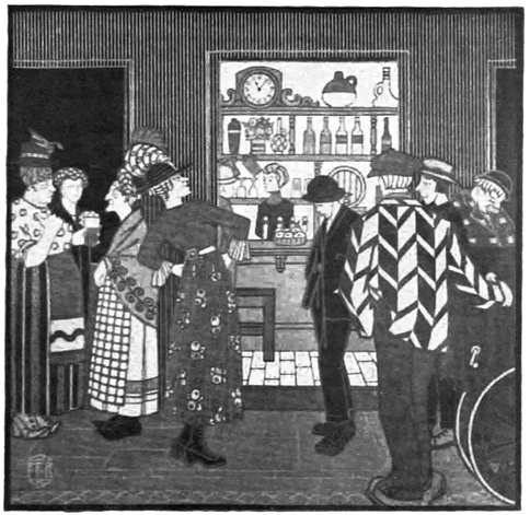Most of the cliques have their being in Chelsea, though Fitzroy Square and the Garden City occasionally put forward claims, and Bedford Park asserts itself. I suspect that the movement is nowadays away from Chelsea. King’s Road grows every day more mercantile; nothing in it recalls the arts except a slight excess of shops which sell artists’ materials. One does meet the Chelsea girl, no longer in a jibbah, but more likely in an eloquent sweater, with her hair cut short and her feet brogued, but then the Chelsea style has crept into many circles. You can go into the Chenil Gallery, where you will always find works by Mr Augustus John and Mr Gill; you can even go and have lunch at the Good Intent, but somehow Chelsea will not seem to you very Chelsea-ish. Indeed, there are rows and rows of studios near Glebe Place, Church Street, Redcliffe Square, in all sorts of odd back-yards and shanties, but the whole thing does not hold132 together. At the Good Intent, for instance, you will find a small, quiet restaurant, decorated with old furniture, pictures that may have been advanced once upon a time, a jolly old pug, very fat and wheezing, its portraits on the wall, grossly flattered, with a mauve ribbon round its neck; you will see at the tables mainly women who live at local diggings, rather tired and lonely looking, as women grow when they live in diggings and toast muffins on the gas stove.