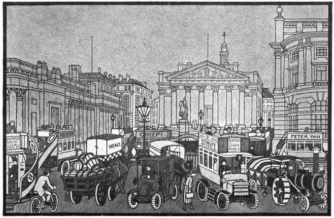 I shall not tell you anything of ‘quaint corners,’ or ‘picturesque bits.’ I will not cut up and pickle London. Ever since the days of Dickens (or is it since those of Dr Syntax?) people have ranged4 our unfortunate town armed with a butterfly-net: swoop! caught Cloth Fair! Another swoop! Staple Inn lies in the butterfly-net. Quick, into the pickle-jar. Now for the cyanide. Here they are, London butterflies, ready for delineation by Mr Hugh Thompson. No, I will pickle you no living strips of London Town, and I promise that not once will I portray a humorous bus-conductor. One reason is that there are no humorous bus-conductors; there are only raucous brutes, working long hours, and maintained in a state of pessimism because these long hours separate them from the public-house. They do not, however, separate them enough.