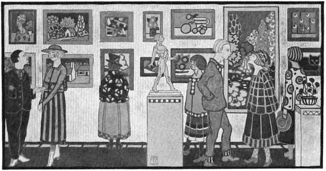 126 The old arts are unkind to the young arts. Struck by a certain wilful outrageousness which often overlays talent and in the beginning always heralds it, the old arts make as much fun of the new arts, as the old arts made of the older when they were young. Some of my readers may remember Mr Epstein’s rather theoretical Venus, at whose feet reposed a wheel. It was an abstract piece of sculpture, but, however abstract, I think it was a little harsh of Mrs Aria to describe it as a sick penguin sitting on a broken bicycle. The truth is that the modern forms of art are not as wilful or as intentionally shocking as their adepts choose to make out. It may be true that most schools, from the impressionists onwards, have formed round one man who had something original to say in an original way, and that most of the pupils, having nothing original to say, found it necessary to say it in a violently original way. That is true to a certain extent; truer, perhaps, is it to say that ‘genius creates the taste with which it is enjoyed.’ Thus, I think it quite as likely that people like Manet created the taste for impressionism, just as Wagner created a taste for music in reaction against, let us say, Rossini. Nature, after all, is only a thing which one conceives, and not a thing which really exists; it varies with the eye that beholds it, and if a man sincerely and violently feels that trees are pink, then to him they are pink, and if he has art enough to translate his temperament into those pink trees, then the people who can understand him will learn to see trees like him, that is, pink. We need not stress this, because it is an extreme case, but I submit that the modern forms of art, during the last dozen years, have all of them tended to express nature on the lines of certain conventions, and that instead of taking up an attitude of contempt, it was easy to understand these conventions, therefore, to understand the artist, therefore, to collect from the canvas the impression he painted there. Here, I will be told by the Philistine: ‘Why should I see that a face looks like a cube?’ Well, nobody wants to force him to see a face as a cube if he doesn’t want to, but one is entitled to point out to him that he has already accepted many conventions. He is quite willing to look at Gainsborough’s ‘Blue Boy,’ and to see it127 as a human figure, though it has only surface and not volume. He is quite willing to look at Venus of Milo and to accept it as a reproduction of a beautiful woman, though it has no colour. He is quite willing to go to a play the action of which extends over five years, and to see this action condensed into two and a half hours. The public has to accept the arts conventionally because the arts do not reproduce nature, they interpret it.
