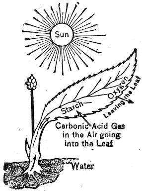 Source of Plant Energy.—We notice that green plants thrive only in the light, while animal growth is largely independent of light. In fact, in the salt mines of Poland there are churches and villages below the ground, and children are born, become adults, and live all their lives below ground, without seeing the sun. (That these people are not very strong is doubtless due more to want of fresh air and other causes than to want of sunlight.)