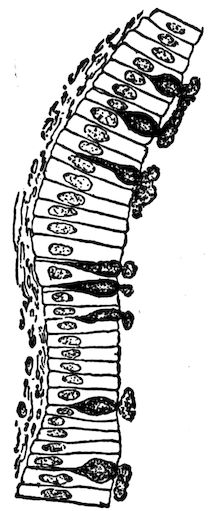 Fig. 8.—Mucous Membrane formed of one layer of cells. A few cells secrete mucus.