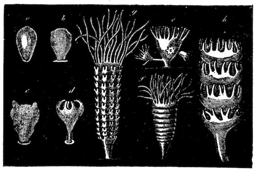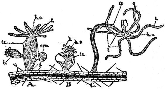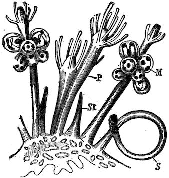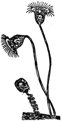 Fig. 17.—Vorticella (or bell animalcule), two extended, one withdrawn.