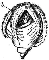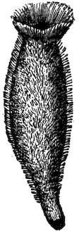 Shape and Structure.—The paramecium’s whole body, like the amœba’s, is only one cell. It resembles a slipper in shape, but the pointed end is the hind end, the front end being rounded (Fig. 14). The paramecium is propelled by the rapid beating of numerous fine, threadlike appendages 14on its surface, called cilia (Latin, eyelashes) (Figs.). The cilia, like the pseudopods of the amœba, are merely prolongations of the cell protoplasm, but they are permanent. The separation between the outer ectoplasm and the interior granular endoplasm is more marked than in the amœba (Fig. 14).
