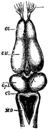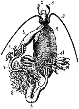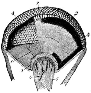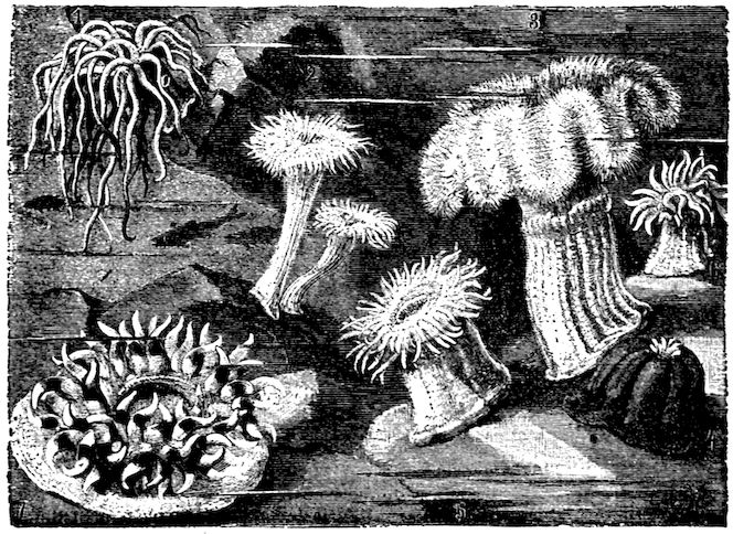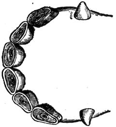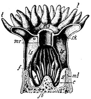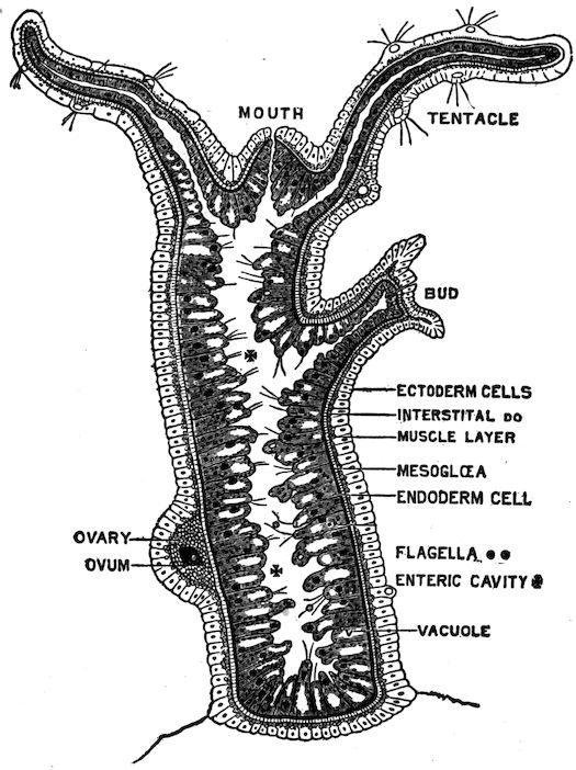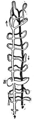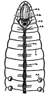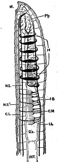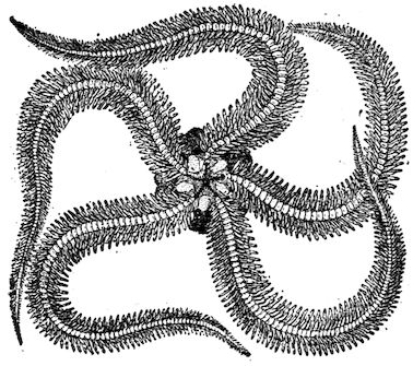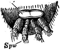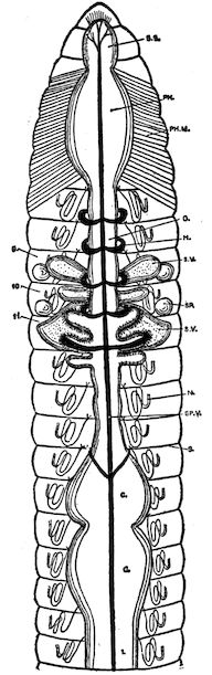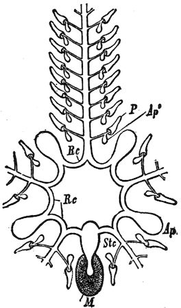 The Eight Branches or Sub-kingdoms.—The simplest classification divides the whole animal kingdom into eight branches, named and characterized as follows, beginning with the lowest: I. Protozoans. One-celled. II. Sponges. Many openings. III. Polyps. Circular; cuplike; having only one opening which is both mouth and vent. IV. Echinoderms. Circular; rough-skinned; two openings. V. Molluscs. No skeleton; usually with external shell. VI. Vermes. Elongate body, no jointed legs. VII. Arthropods. External jointed skeleton; jointed legs. VIII. Vertebrates. Internal jointed skeleton with axis or backbone.[1]