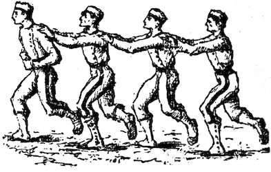 Movements.—Sometimes while the pseudopods are being extended and contracted, the central portion remains in the same place (this is motion). Usually only one pseudopod is extended, and the body flows into it; this is locomotion (Fig. 11). There is a new foot made for each step.