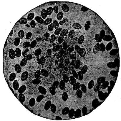 Suggestions.—Stagnant water often contains the paramecium as well as the amœba; or they may be found in a dish of water containing hay or finely cut clover, after the dish has been allowed to stand in the sun for several days. A white film forming on the surface is a sign of their presence. They may even be seen with the unaided eye as tiny white particles by looking through the side of the dish or jar. Use at first a ⅓ or ¼ in. objective. Restrict their movements by placing cotton fibres beneath the cover glass; then examine with ⅕ or ⅙ objective. Otherwise, study figures.
