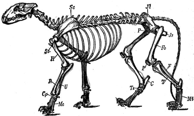 All mammals have the skeleton, or support of the body, on the inside, the axis of which is called the vertebral column. This feature also belongs to the classes of reptiles, amphibians, and fishes. It is therefore consistent to unite these classes by a general idea or conception into a great branch of animals called the vertebrates.