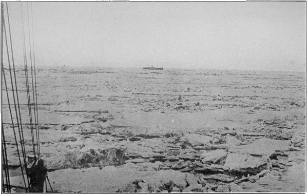The great polar pack was pressing rapidly toward the island. Unless the ships escaped, it seemed likely they would be securely hemmed in before night. In this event, if they escaped wreck by ice pressure they faced the prospect of lying still in an ice bed until the pack broke up in the spring.