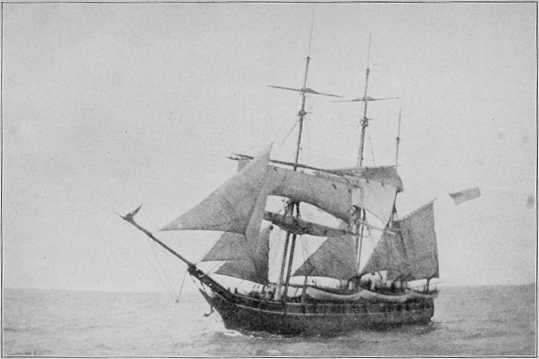 For several hours the brig sailed steadily on this course. Along about 9 o'clock, we saw the peculiar, cold, light look above the sky line ahead which meant ice and which sailors call an "ice horizon," to be distinguished at a glance from [ 245 ] a water horizon, which is dark. A little later, we sighted the white loom of the great ice continent. Later still, we picked up the bergs, floes, islands, and chunks of ice which drift forever along its edge.