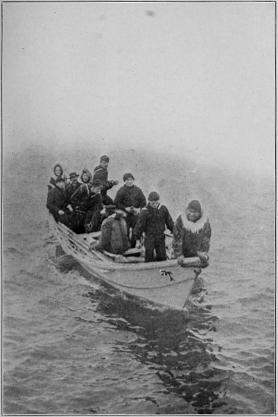 It was on October tenth that we broke out the Stars and Stripes at our main gaff and squared our yards for home. Everybody cheered as the flag went fluttering up, for everybody was glad that the end of the long, hard voyage was in sight. Behring Straits which when we were about to enter the Arctic Ocean—sea of tragedy and graveyard of so many brave men and tall ships—had looked like the portals of inferno, now when we were homeward bound seemed like the gateway to the Happy Isles.