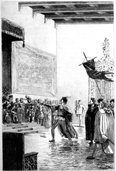 "Take that," said the fellow, "for forcing thyself into the place taken up for the horses of the Baron of Randelsheim."