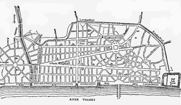 "Charles the Second, son of Charles the Martyr, King of Great Britain, France, and Ireland, Defender of the Faith, a most generous prince, commiserating the deplorable state of things, whilst the ruins were yet smoking, provided for the comfort of his citizens and the ornament of his city, remitted their taxes, and referred the petitions of the magistrates and inhabitants to the Parliament, who immediately passed an Act that public works should be restored to greater beauty with public money, to be raised by an imposition on coals; that churches, and the Cathedral of Saint Paul, should be rebuilt from their foundations, with all magnificence; that bridges, gates, and prisons should be new made, the sewers cleansed, the streets made straight and regular, such as were steep levelled, and those too narrow made wider; markets and shambles removed to separate places. They also enacted that every house should be built with party-walls, and all in front raised of equal height, and those walls all of square stone or brick, and that no man should delay building beyond the space of seven years. Moreover, care was taken by law to prevent all suits about their bounds. Also anniversary prayers were enjoined; and to perpetuate the memory hereof to posterity, they caused this column to be erected. The work was carried on with diligence, and London is restored, but whether with greater speed or beauty may be made a question. At three years' time the world saw that finished which was supposed to be the business of an age."