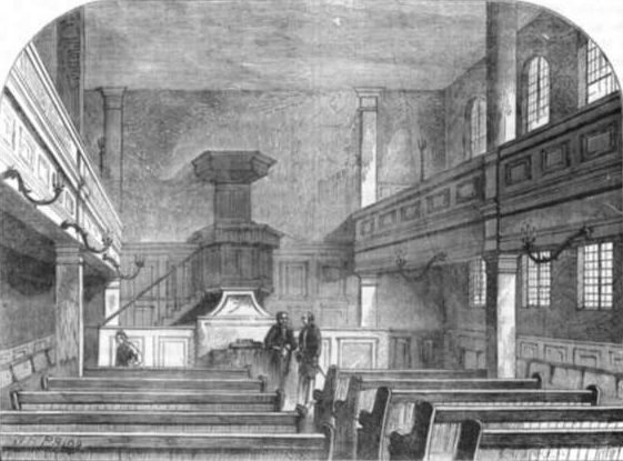 The Presbyterian Chapel in the Weigh-house was founded by Samuel Slater and Thomas Kentish, two divines driven by the Act of Uniformity from St. Katherine's in the Tower. The first-named minister, Slater, has distinguished himself by his devotion during the dreadful plague which visited London in 1625 (Charles I.). Kentish, of whom Calamy entertained a high opinion, had been persecuted by the Government. Knowle, another[Pg 1158] minister of this chapel, had fled to New England to escape Laud's cat-like gripe. In Cromwell's time he had been lecturer at Bristol Cathedral, and had there greatly exasperated the Quakers. Knowles and Kentish are said to have been so zealous as sometimes to preach till they fainted. In Thomas Reynolds's time a new chapel was built at the King's Weigh-house. Reynolds, a friend of the celebrated Howe, had studied at Geneva and at Utrecht. He died in 1727, declaring that, though he had hitherto dreaded death, he was rising to heaven on a bed of roses. After the celebrated quarrel between the subscribers and non-subscribers, a controversy took place about psalmody, which the Weigh-house ministers stoutly defended. Samuel Wilton, another minister of Weigh-house Chapel, was a pupil of Dr. Kippis, and an apologist for the War of Independence. John Clayton, chosen for this chapel in 1779, was the son of a Lancashire cotton-bleacher, and was converted by Romaine, and patronised by the excellent Countess of Huntingdon; he used to relate how he had been pelted with rotten eggs when preaching in the open air near Christchurch. While itinerating for Lady Huntingdon, Clayton became acquainted[Pg 1159] with Sir H. Trelawney, a young Cornish baronet, who became a Dissenting minister, and eventually joined the "Rational party." An interesting anecdote is told of Trelawney's marriage in 1778. For his bride he took a beautiful girl, who, apparently without her lover's knowledge, annulled a prior engagement, in order to please her parents by securing for herself a more splendid station. The spectacle was a gay one when, after their honeymoon, Sir Harry and his wife returned to his seat at Looe, to be welcomed home by his friend Clayton and the servants of the establishment. The young baronet proceeded to open a number of letters, and during the perusal of one in particular his countenance changed, betokening some shock sustained by his nervous system. Evening wore into night, but he would neither eat nor converse. At length he confessed to Clayton that he had received an affecting expostulation from his wife's former lover, who had written, while ignorant of the marriage, calling on Trelawney as a gentleman to withdraw his claims on the lady's affections. This affair is supposed to have influenced Sir Harry more or less till the end of his days, although his married life continued to flow on happily.[Pg 1160]