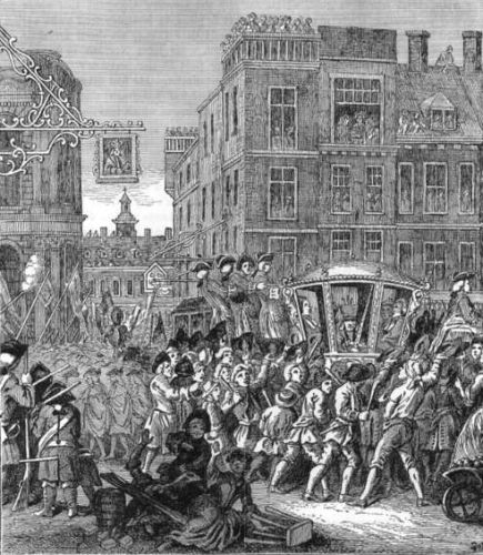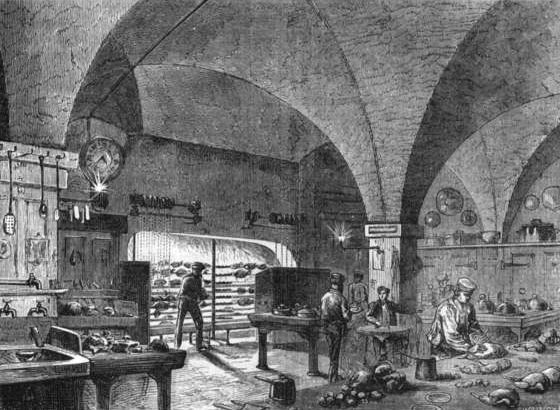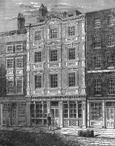 The Great Fire of 1666 broke out at the shop of one Farryner, the king's baker, 25, Pudding Lane. The following inscription was placed by some zealous Protestants over the house, when rebuilt:—"Here, by the permission of Heaven, Hell broke loose upon this Protestant city, from the malicious hearts of barbarous priests, by the hand of their agent, Hubert, who confessed and on the ruins of this place declared the fact for which he was hanged—viz., that here begun that dreadful fire which is described on and perpetuated by the neighbouring pillar, erected anno 1681, in the mayoralty of Sir Patience Ward, Kt."
