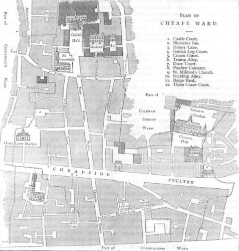 To find Chaucer's merchant you need not go further than a few yards from Milk Street. There you will see him at any stall, grave, and with forked beard; on his head a Flemish beaver hat, and his boots "full fetishly" clasped. He talks much of profits and exchanges, and the necessity of guarding the sea from the French between Middleburgh and the Essex ports.