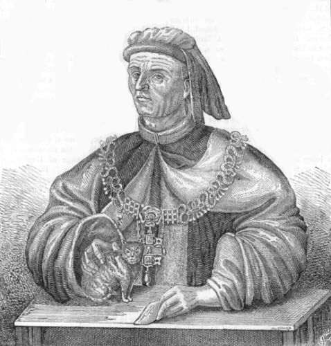 The rich monk that loved hunting was a character that any monastery of Chaucer's London could furnish. Go early in the morning to Aldersgate or Cripplegate, and you will be sure to find such a one riding out with his greyhounds and falcon. His dress is rich, for he does not sneer at worldly pleasures. His sleeves are trimmed with fur, and the pin that fastens his hood is a gold love-knot. His brown palfrey is fat, like its master, who does not despise a roast Thames swan for dinner, and whose face shines with good humour and good living. It is such men as these that Wycliffe's followers deride, and point the finger at; but they forget that the Church uses strong arguments with perverse adversaries.