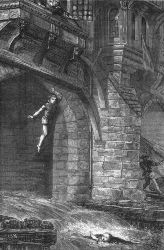 Certain spots in London have become popular with suicides, yet apparently without any special reason, except that even suicides are vain and like to die with éclat. Waterloo Bridge is chosen for its privacy; the Monument used to be chosen, we presume, for its height and quietude. Five persons have destroyed themselves by leaps from the Monument. The first of these unhappy creatures was William Green, a weaver, in 1750. On June 25 this man, wearing a green apron, the sign of his craft, came to the Monument door, and left his watch with the doorkeeper. A few minutes after he was heard to fall. Eighteen guineas were found in his pocket. The next man who fell from the Monument was Thomas Craddock, a baker. He was not a suicide; but, in reaching over to see an eagle which was hung in a cage from the bars, he overbalanced himself, and was killed. The next victim was Lyon Levi, a Jew diamond merchant in embarrassed circumstances, who destroyed himself on the 18th of January, 1810. The third suicide[Pg 1166] (September 11, 1839) was a young woman named Margaret Meyer. This poor girl was the daughter of a baker in Hemming's Row, St. Martin's-in-the-Fields. Her mother was dead, her father bed-ridden, and there being a large family, it had become necessary for her to go out to service, which preyed upon her mind. The October following, a boy named Hawes, who had been that morning discharged by his master, a surgeon, threw himself from the same place. He was of unsound mind, and his father had killed himself. The last suicide was in August, 1842, when a servant-girl from Hoxton, named Jane Cooper, while the watchman had his head turned, nimbly climbed over the iron railing, tucked her clothes tight between her knees, and dived head-fore-most downwards. In her fall she struck the griffin on the right side of the base of the Monument, and, rebounding into the road, cleared a cart in the fall. The cause of this act was not discovered. Suicides being now fashionable here, the City of London (not a moment too soon) caged in the top of the Monument in the present ugly way.